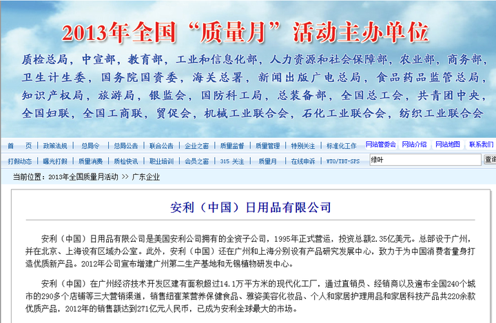 安利(中国)日用品有限公司_2013年全国质量月“企业质量诚信倡议”活动_中国质量网
