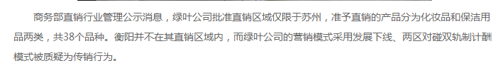 有绿叶人员在评论怼我说国家给绿叶直销牌照了,我想说我发的图片你不会看呢?绿叶的直销牌照只在苏州,跨区域直销是违法的,湖南工商部门说绿叶涉嫌变相传销,当然可能只是个别行为。