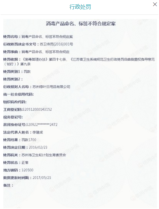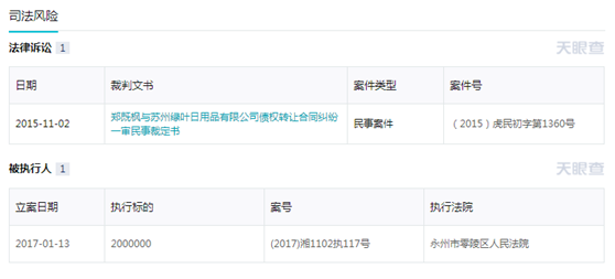 1.苏州绿叶日用品有限公司,曾因消毒产品命名、标签不符合规定,而被列入经营异常名单,公司是被执行人